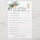 Diseño moderno y elegante con una baya de pino acuático, un ramo y un marco de color verde, "Qué tan bien conoce a la novia", caligrafía de "Bridal Shower", sobre fondo blanco. Utilice la herramienta Personalize para agregar su información. Para ver los elementos coincidentes, visite mi colección de vegetación de vacaciones de invierno.