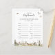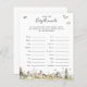 Los tonos tierra y orgánicos son siempre una opción excelente para las duchas infantiles. Una paleta de color marrón, verde suave y crudo para una telaraña de bosques ciertamente no decepciona. Los tonos apagados son mínimos y naturales... son perfectos para el boho al aire libre, la madera o el fiesta de jardín de primavera. Los materiales naturales como la madera, la vegetación y la piedra hacen que esta combinación de colores sea fácil de incorporar en un evento hermoso. Caminata por los bosques - colección de historias de verano sobre lindos animales forestales con flores silvestres, vegetación, árboles. Por supuesto, no es necesario que juegues en la ducha para bebés, pero ten en cuenta que vas a tener un grupo de todas las edades, y la mayoría de los clientes probablemente nunca se han encontrado antes que el fiesta. Mezclar algunos de estos clásicos juegos de ducha para bebés es la manera perfecta de romper el hielo. Nuestras tarjetas de juegos de doble cara son un elegante y práctico complemento de cualquier ducha. Estas tarjetas diseñadas profesionalmente son rápidamente personalizable. Agregue la redacción de su personalizado a este diseño utilizando los cuadros "Editar esta plantilla de diseño" en el lado derecho del elemento, o haga clic en el botón azul "Personalizar" para organizar el texto, cambiar los tipos de letra y los colores y también agregar información o imágenes adicionales a este diseño. Haga clic en "Personalizar adicional" para abrir opciones completas de edición. Si necesita algún elemento de coordinación, (gracias a las tarjetas, etc.) por favor contáctame para un pedido de personalizado. **** Para las solicitudes de personalizado con las que necesita mi ayuda, no coloque esta mercancía en su carrito. En su lugar, envíeme su solicitud por correo electrónico a lauralise@iyhtvdesigns.com Una vez que el artículo esté disponible, se le enviará por correo electrónico un enlace a su mercancía. Puede usar ese enlace para realizar su pedido. Por favor, espere hasta 48 horas.