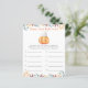 "Hay una calabaza en camino. ¡Celebren con la temática de la calabaza de este personalizado para el fiesta de la ducha de bebé! Acuarela linda calabaza kawaii personalizado con gorra de otoño (gorra) y hojas de otoño. En el reverso de la tarjeta están las hojas de otoño.