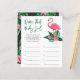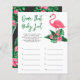 El diseño de la invitación a la ducha para bebés incluye flamencos rosas con frontales verdes de hojas de palma y flores de hibisco tropicales. "Aloha Baby". Un patrón floral tropical con color de fondo negro se viste por la parte posterior de la tarjeta.