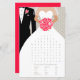 Elegante novio gráfico con tux y novia con velo sosteniendo un juego de búsqueda de palabras de rosas estilizados de color rojo con ducha de novia floral. Se ruega a los fiestas de la ducha de novia que encuentren las palabras relacionadas con el boda en esta divertida búsqueda de palabras de estilo boda. Un juego fácil que es bueno para usar como un juego de regalo que ofrece un regalo de premio a la persona que termina primero. Diseño único y arte gráfico por Sarah Trett para www.mylittleedenweddings.com