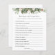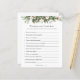 ¿Quién conoce mejor a la pareja? Tarjeta de juego con ducha de novia con cascada de agua de vegetación de invierno.