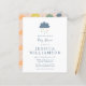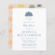 Nubes y caídas de lluvia presupuestales en invitación azul a Baby Shower