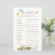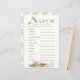 Esta elegante tarjeta de juego "un nuevo capítulo empezará pronto" para jugar a la palabra de bebé scramble/ducha de bebé, tiene un fondo crema con una pila de libros, mariposas, un ramo de flores, tetera y té en acuarela. El reverso presenta un fondo de color crema con motivos florales. Personalízalo para tus necesidades. Puedes encontrar productos coincidentes en mi tienda. Respuestas: 1. DIAPER 2. PACIFICADOR 3. FUERTE 4. ANIMAL 5. CUERPO 6. OSO DE TEDÍA 7. RATTTLE 8. NURSERY 9. FRASCO 10. FÓRMULA 11 LECHE 12. CRADLE