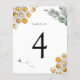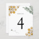 Los números de las mesas, que incluyen agua, eucalipto y abejas, coinciden con la colección Golden Bee.