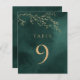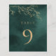 Números de tabla de Bodas botánicos de oro y verde esmeralda