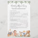La tarjeta de juego de Rhyme de Nursery Rhymes con temática de ducha para bebés incluye rimas de nodriza acuática, ilustracion de rimas de vivero y vegetación acuática eucalipto garland y elegante letra de estilo manuscrito.