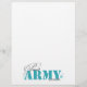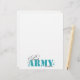 Orgullosa mamá del ejército en cartas verde azuladas con estrellas en el fondo.