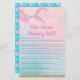 Estas adorables "Who Knows Mami Best Cards" son una divertida actividad en Baby Shower. Simplemente pasen por el Baby Shower donde los huéspedes se divertirán respondiendo preguntas sobre la madre que será. ¡La persona con la más correcta gana! El diseño presenta una colorida cola de sirena con falsos adornos purpurinas de oro.