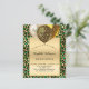 Para una elegante Quinceañera, 15 años. Un leopardo verde esmeralda y dorado, fondo de patrón de chita. Un marco dorado y globos. Personalice y agregue un nombre, edad y detalles del fiesta. El nombre se escribe con un guión de estilo con letras a mano