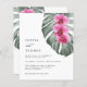 Trae tu boda de de ensueño a la vida con este diseño de invitación a bodas tropical único en una hoja de papel satinado amigable con presupuesto. Cuenta con un trío de orquídeas de fucsia y rosa y una hermosa hoja de monastera con suaves acuarelas. El diseño es a la vez sencillo y elegante, con un aspecto minimalista animado por los elementos botánicos tropicales. Esta invitación es una elección maravillosa para bodas costeros, bodas de destino o incluso bodas de la ciudad que usan un mágico tema tropical. La opción está disponible para añadir sobres blancos para este diseño, o para pedirlos sin los sobres.