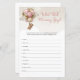 Prepárate para un buen momento con la tarjeta de juego Rubor Brown Ivory "What Was Mamá Say" de Teddy Bear para una ducha de bebé chica con el tema "we can bearly wait". Esta deliciosa adición hará que los invitados se regodeen y adivinen en seguida las citas de mamá relacionadas con el bebé. Los suaves colores de color rubor, marrón y marfil capturan la dulzura de la ocasión y añaden un toque atrevido a la celebración. Prepárese su espíritu competitivo mientras se sumerge en este juego encantador e interactivo que seguramente hará recuerdos que durarán toda la vida. Contáctame para obtener elementos coincidentes o para personalizarlos, Rosas Rubor Baby ©