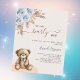 Para una moderna ducha tipo boho. Un fondo beige. Decorada con rosas azules polvorientos, pampas y un oso de peluche. Personalice y agregue un nombre y detalles del fiesta. 1 hoja = 1 borde impreso de invitación al borde.
