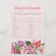 Palabras Tropicales Del Bebé. Añade diversión y emoción a tu ducha de bebé con nuestro juego de peleas de palabras para bebés. Este juego presenta elegantes toques modernos y colores vivos, con impresionantes acuarelas con exuberantes hojas de palmera y monstera, orquídeas de magenta y fucsia vívidas y delicadas flores de hibisco rosa. Mantén a tus huéspedes entretenidos y comprometidos con este juego de bonito diseño que complementa perfectamente tu temática tropical. (Llave - 1. pañal, 2. stroller, 3. pacificador, 4. baby, 5. precioso, 6. mecedor, 7. cuna, 8. leche, 9. asiento de coche, 10. vivero, 11. fórmula, 12. cigüeña, 13. paquete de alegría, 14. lullaby, 15. manta, 16. trona alta. 7. ducha, 18. dinosaurios, 19. bibb, 20. pato de goma)