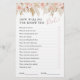 Haz que tu ducha de novia sea una maravilla para recordar con este lindo juego de fiesta "¡qué bien conoces a la novia"! Con hojas de palma tropicales secas del desierto de acuarela, pampas, flores rosadas y blancas, corazones de amor y una plantilla de texto editable.