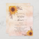 Para una moderna ducha tipo boho. Un fondo de color oro rosa, color rosa oscuro, fino y de aspecto metálico. Decorada con girasoles, pasto de pampas. Personalice y agregue un nombre y detalles del fiesta.