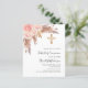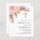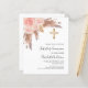 Rosa de oro y flores rosadas, rosas y pasto de pampas y cruz dorada. Personalice y agregue un nombre y detalles. 1 hoja = 1 borde impreso de invitación al borde.