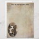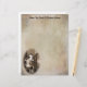 Dale a tus notas personales un toque vintage con este papel de carta que presenta una romántica escena de boudoir con una hermosa mujer sentada en un tocador, arreglando su cabello. El texto en la parte superior de la página es personalizable para que puedas insertar tu propio nombre. Ver también las etiquetas de dirección y sellos de correos a juego.