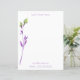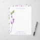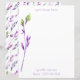 Esta papelería de doble cara tiene un elegante diseño de acuarela de tallos florales púrpura y verde sobre fondo blanco. Puede personalizar fácilmente la información en las plantillas que he proporcionado. Coordina con los otros artículos de esta colección temática de jardín. Si te gusta lo que ves, pero no ves lo que quieres, puedo editar mis diseños para imprimir en los artículos que necesitas. Por favor contáctame para un pedido personalizado. Para problemas con su pedido y envío, por favor comuníquese con el Soporte de Zazzle a través de https://goo.gl/nCgptf