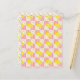 Lemones amarillos con rayas rosas y cuadrados verde azulados de círculo amarillo rosado naranja. Revierte a círculos y puntos verde azulados, amarillos, rosados y naranjas.