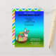 Invitación de Semana Santa en papel e impreso en ambos lados. Conejo gris con huevos de Pascua decorativos en una canasta para esta cacería de huevos de Pascua con fondo azul a verde. El patrón de zigzag en la espalda. Personalízalo con tu información. Ver todas mis tiendas en https://bit.ly/SandyspiderStores