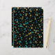 Consta de confeti color turquesa y purpurina dorado sobre un fondo negro. Se puede cambiar el color de fondo.
