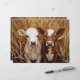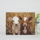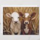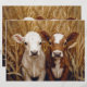 Una encantadora representación de dos curiosos terneros vacuno parados en medio de un alto campo de golf bajo un cielo azul. Esta encantadora granja ofrece una sensación de tranquilidad y calidez rural, perfecta para proyectos de campo o acogedora decoración de granja.