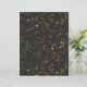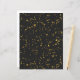 Presenta flecks de Relieve metalizado de oro falso y marcas en un diseño de fondo negro de carbón vegetal.