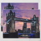 Hermosa imagen fotográfica del Puente de la Torre de Londres bajo cielos turbios morados que crean un impresionante paisaje urbano y un excelente telón de fondo para fotos de vacaciones
