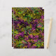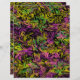 Resumen de diseño de arte digital con movimientos de color verde brillante, amarillo y rosa sobre un fondo negro, "Caos cósmico". El mismo diseño en ambos lados.