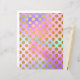 Un patrón de falsos puntos de polka purpurina sobre un fondo de gradiente color arcoiris pastel.