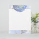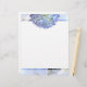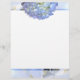 Papel de escritura en blanco con flor floral azul claro y con flor de horangea en la parte superior.