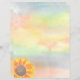 Este papel de papelería está decorado con una colorida acuarela en ambos lados y un girasol amarillo. Acuarela original © Michele Davies.