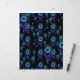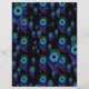 Papel negro profundo con plumas flotantes de pavo real de distintos tamaños. El blues y el morado fresco caen sobre el negro en este papel de scrapbook. Papel divertido para la reserva de recortes u otros papeles, o incluso como papel de embalaje para un paquete minúsculo y precioso.