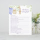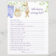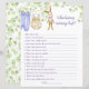 Juego de hojas de papel "¿Quién conoce mejor a la mamá?" para la ducha de bebé, la ducha de bebé, decorada con hermosos ilustraciones acuarelas de ropa de bebé linda colgada en una fila para secarse, un lindo conejito relleno y rodeado de ramas delicadas con hojas verde claro.