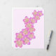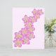 Flores de frangipani pintadas a mano en rosa y amarillo sobre un fondo rosado.