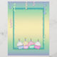 Papel letterhead para invitaciones de cumpleaños, celebraciones, envíos de correo de la empresa, etc. El diseño presenta cupcakes y serpentinas en un fondo verde, azul y amarillo. Simplemente agregue su texto y elija el acabado del papel. Otros productos disponibles en este diseño.