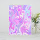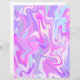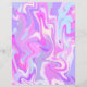 El diseño presenta un giro de mármol multicolor en un esquema de color rosa, violeta y turquesa.