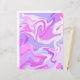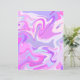 El diseño presenta un giro de mármol multicolor en un esquema de color rosa, violeta y turquesa.