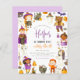 Invitar a la familia y amigos a pasar un tiempo espumoso con estas lindas invitaciones para la fiesta de cumpleaños de Halloween. Este diseño de presupuesto presenta un borde pintado a mano de divertidos personajes de Halloween, hay niños disfrazados, gatos negros, murciélagos, calabazas sonrientes, fantasmas, esqueleto bailarín, arañas, globos, estrellas, pociones mágicas, cráneo con ojos de corazón, palo de leña volador, maíz dulce y más! Dentro del marco, el nombre de la chica de cumpleaños aparece con letras a mano de guión grande, con sus detalles de edad y fiesta debajo en una tipografía elegante. El esquema de color del texto es una paleta clásica de Halloween: naranja, púrpura, gris y negro! Las cartas se revierten a un color púrpura pastel. Hemos elegido "CINCO" para la edad de la plantilla, pero estas tarjetas son geniales para una fiesta de primer cumpleaños o niños de cualquier edad! Para el personalizar, simplemente haga clic en "Personalizar esta plantilla" y edite el texto para mostrar su propia información de celebración! Como parte de la selección presupuestaria de Zazzle, esta hoja no es un tamaño de invitación estándar ni una calidad de papel. Si quieres este diseño en una tarjeta de invitación, puedes encontrarlo en nuestra tienda o usar la Máquina Zazzle Make para transferirlo al producto de tu elección. Si tienes alguna pregunta, por favor no dudes en contactarte - ¡estaré encantado de ayudar! Sólo ten en cuenta que no puedo modificar un orden existente. Examine la colección de arriba o visite mi tienda para más invitaciones de fiesta de cumpleaños con temática de Halloween.