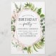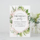 El ecologismo del presupuesto Eucalyptus verde y el oro Rosa - Invitaciones a la fiesta de cumpleaños de color de agua geométrica rosa Rubor incluyen una tipografía de escritura hermosa y elegante con un verde moderno y elegante para la celebración especial de los cumpleaños 16, 18, 21, 30, 40, 50, 60, 70.