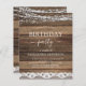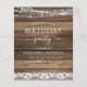 Partido de Cumpleaños del Presupuesto - Rustic Farmhouse String Lights Lace Invitaciones sobre el fondo de la madera - incluye hermosa y elegante tipografía de escritura con moderna Country Farm House Sparkle para la celebración especial de los cumpleaños 16, 18, 21, 30, 40, 50, 60.