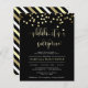 Invitación a la Fiesta de Cumpleaños Sorpresa de Budget Gold Confetti por Eugene Designs. Envíe estas elegantes invitaciones en negro y oro y comience su fiesta sorpresa con un mensaje moderno. En el frente, en un elegante guión de estilo manuscrito están las palabras "shhh... es una sorpresa" que se cortan digitalmente en Relieve metalizado dorado. Al revés, hay rayas diagonales elegantes en los mismos colores marrones dorados que el polka dot confetti en la parte delantera. Las fuentes serif en blanco y negro bloqueadas comunican los detalles de su fiesta sorpresa con la máxima claridad. Como parte de la selección de presupuesto de Zazzle, estas invitaciones no vienen con sobres ni encajan en un sobre de tamaño estándar. La talla más cercana es la A6, pero hay una distancia de aproximadamente media pulgada. Si no te importa la falta de confort, puedes usar sobres A6 tan ampliamente disponibles. De lo contrario, este diseño se puede transferir a un formato estándar de 5x7 (que incluye sobres) utilizando la herramienta de transferencia de diseño. Como guía aproximada, al momento de escribir este artículo (enero de 2021) 100 invitaciones presupuestarias (incluyendo un descuento por volumen) costarían alrededor de $39, mientras que 100 invitaciones estándar 5x7, incluyendo sobres, costarían aproximadamente $135. Su kilometraje puede variar dependiendo de los códigos de promoción disponibles de Zazzle, las ventas a nivel de sitio o los cambios en los precios.