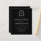 Este clásico y elegante diseño de invitación a fiesta de graduación presenta un monograma blanco inicial en serif abierto rodeado por una línea de arte acanthus escudo sobre un fondo negro. Personalice el texto con el nombre del graduado y los detalles del fiesta. El dorso de la tarjeta es negro sólido. Ideal para estudiantes de secundaria, universitarios o universitarios.