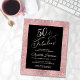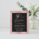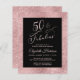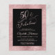 Elegante y amigable con el presupuesto y moda negro y brillante rosa de oro invitación a fiesta de 50 años con "50 & Fabulous" en un elegante guión de oro de rosa y una sencilla tipografía de oro rosa.