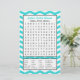 ¿Buscas un fiesta de ducha de novia en turquesa? La mirada se ha acabado. Este divertido fiesta de ducha de novia también cuenta con rayas de chevron azul turquesa y blanco zigzag en el fondo del juego. El juego es una búsqueda de palabras bodas. Puedes poner el nombre de la novia encima para crear un juego de fiestas personalizados en turquesa. Copyright henishouseofpaper