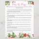 ¡Un bebe dulce está en camino! Este juego de cartas "Pass the Prize" (Pasar el Premio) con ducha de bebé tiene fresas, flores blancas y vegetación. Se complementa con una divertida tipografía de escritura a mano y un lado inverso de semillas de fresa dulce. Puede personalizar de todos los detalles del texto y de la ubicación del gráfico a sus necesidades específicas. Póngase en contacto con el diseñador para obtener cualquier producto que no esté disponible.