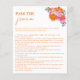 Diviértase en su ducha/soltera nupcial con este juego genial, con un texto floral y editable en color rosa bonito y naranja. Personalizar si es necesario haciendo clic en "editar usando la herramienta de diseño".