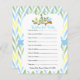 Pastel Squirrel Baby Boy Shower - Desearía El Volante De Los Juegos De Baby Shower. Busque tarjetas de tamaño diferentes (compruebe el tamaño antes de realizar el pedido) y hay disponibles colores diferentes. ⭐ Este Producto es 100% Personalizable. Los gráficos y/o el texto se pueden agregar, borrar, mover, cambiar de tamaño, girar, etc....³ (sólo haciendo clic en el área "EDIT DISEÑN") ⭐ el 99% de mis diseños en mi tienda se hacen en capas. Esto facilita el redimensionar y mover los gráficos y el texto para que encajen perfectamente en cada producto. 📌 (Asegúrese de cambiar el tamaño o mover los gráficos si fuera necesario antes de realizar el pedido) También puede "TRANSFER DESIGN" en otros productos de Zazzle y ajustar el diseño para que se ajuste a la mayoría de los artículos de Zazzle. (el botón está en el lado derecho de la página) Este diseño está hecho con vectores de alta resolución y/o gráficos digitales para una impresión profesional. NOTA 📌: (ESTA ES UNA IMPRESIÓN. Todos los diseños de Zazzle son "impresiones" a menos que se indique lo contrario en "Acerca de este producto" en el lado izquierdo de esta página) El diseño se imprimirá "EXACTAMENTE" como lo ves en la pantalla y en el producto...por lo tanto, asegúrese de que cuando realice sus cambios en el redimensionamiento de cualquiera de los gráficos o textos que encaja correctamente en las áreas y que su ortografía y su redacción sean como le gusta que sea en tamaño, color y fuente. Si tiene alguna pregunta sobre el "DISEÑO ÚNICAMENTE" o necesita ayuda, por favor contacte conmigo en ✉ siggyscott@comcast.net o visite el enlace de mi tienda: https://www.zazzle.com/store/designsbydonnasiggy (Copiar y Pegar) Estaré encantado de ayudar. 📌 TODAS LAS DEMÁS PREGUNTAS (envío, reembolso, impresión, el producto, etc...) por favor contacte con Zazzle o el Maker ⭐ DIRECTAMENTE ⭐. Gracias por el apoyo y por parar por mi tienda - DesignsbyDonnaSiggy. © Donna Siegrist ⭐ ⭐ ⭐ ZAZZLE promete 100% de satisfacción. Si no te gusta absolutamente, ¡Zazzle se lo llevará de vuelta! ⭐ ⭐ ⭐ 1-888-8ZAZZLE (1-888-892-9953) Horas de teléfono: Lunes - Viajero: 9AM - 5PM PT (12PM - 8PM ET)