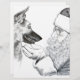 Hermosa pluma original y tinta de Santa y Pastor Alemán de Keith Knudson